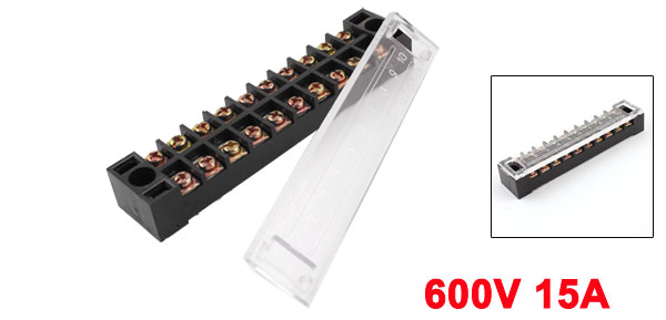 600V 15A Dual Row 10P Screw Connection Barrier Terminal Block Strip