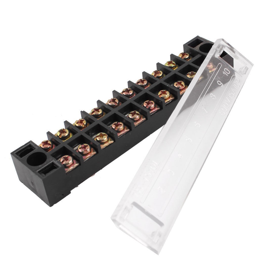 Product Name Barrier Terminal Block Material Metal & Plastic Rated Value 600V 15A Poles 10 P (Dual Row) Size 10.8 x 2.2 x 1.7cm / 4.2" x 0.87" x 0.67" (L*W*H) Color Black & Gold Tone Weight 42g Package Content 1 x Barrier Terminal Block - Reviews