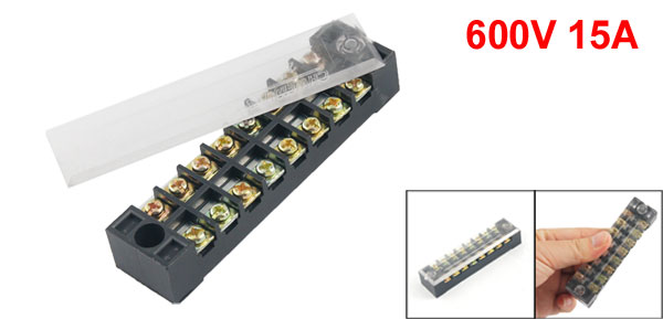 Product Name Barrier Terminal Block Material Metal, Plastic Rated Value 600V 15A Poles 8P (Dual Row) Size 9 x 2.2 x 1.7cm/ 3.5" x 0.87" x 0.7"(L*W*H) Color Black, Clear Net Weight 36g Package Content 1 x Barrier Terminal Block - Reviews