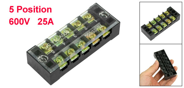 600V 25A 5 Position Screw Terminal Covered Barrier Strip Xynzy