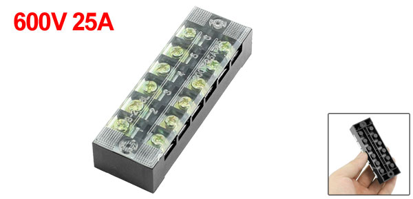 600V 25A 6 Position 6P Screw Terminal Strip Covered Barrier Block