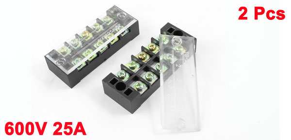600V 25A 6P 5 Position Double Rows Terminal Block Barrier 2 Pcs