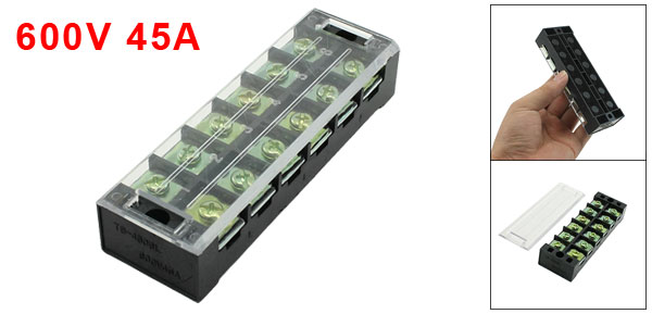 600V 45A 6 Position Covered Dual Row Screw Terminal Barrier Block