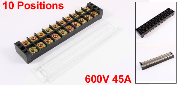 600V 45A Dual Rows 10P 10 Positions Covered Barrier Screw Terminal Block