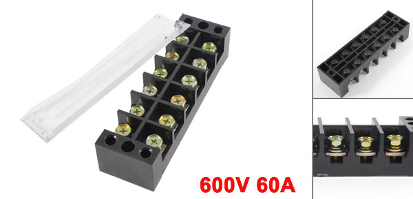 600V 60A 6 Position Double Row Screw Terminal Barrier Block