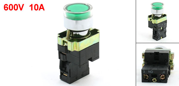 600V Ui 10A Ith SPST NO. Green Pilot Lamp Momentary Push Button Switch