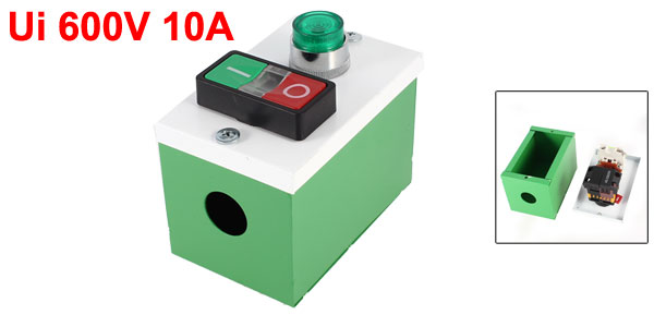 Product Name Power Push Button Switch Station Type I/O (ON-OFF) LED Color Yellow,Green Action Momentary Material Metal , Electric Parts Voltage Ui 600V 10A Total Size (Approx.) 11.5 x 7.5 x 9cm/ 4.5" x 3" x 2.7" (L*W*H) Color Black, Red, Green,White Weight 287g Package Content 1 x Power Push Button Switch Station - Reviews