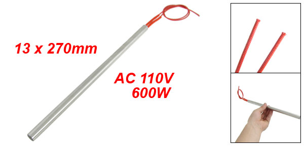 Product Name Cartridge Heater Material Stainless Steel, PVC, Nylon Rated Voltage AC 110V Power 600W Heater Size (Approx.) 13 x 270mm/0.5'' x 2'' (D * L)