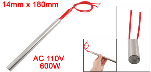 Product Name Cartridge Heater Main Material Stainless Steel, Nylon, PVC Rated Voltage AC 110V Power 600W Heater Size (Approx.) 14 x 180mm/ 0.55" x 7.08" (D * L)