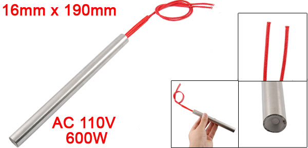 Product Name Cartridge Heater Main Material Stainless Steel, Nylon, PVC Rated Voltage AC 110V Power 600W Heater Size (Approx.) 16x 190mm/ 0.62" x 7.48" (D * L)