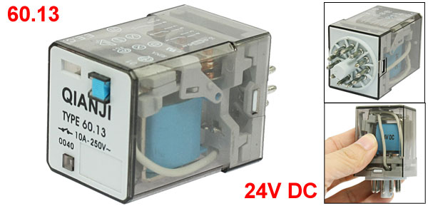 Product Name Relay Model 60.13 Coil 24V DC Load 10A 250V Pin Quality 11 Contact Type 3PDT 3NO+3NC Size (Approx.) 3 x 3.5 x 6.5cm/ 1.2" x 1.4" x 2.6"(L*W*H)