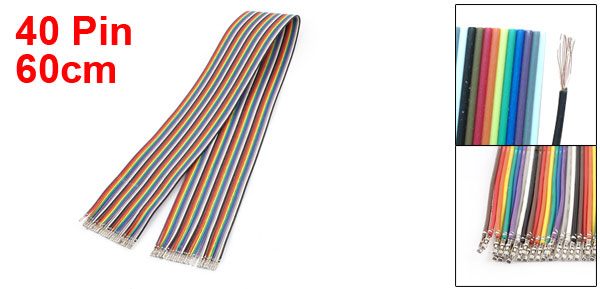 60cm Female to Female 1P-1P 40Pin Jumper Wire Rainbow Ribbon Cable 2.54mm