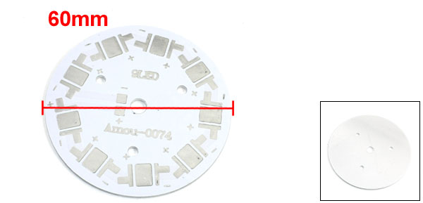 Product Name LED Aluminum PCB Circuit Board Fit for 9pcs x 1W/3W/5W LEDs Diameter 60mm/ 2.4" Thickness 1.5mm/0.06" Net Weight 10g Materials Aluminum Main Color White, Silver Tone Package Content 1 x LED Aluminum PCB Circuit Board - Reviews
