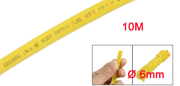 6.0mm Diameter Ratio 2:1 Heat Shrinking Shrinkable Tube Yellow 10M 32.8Ft