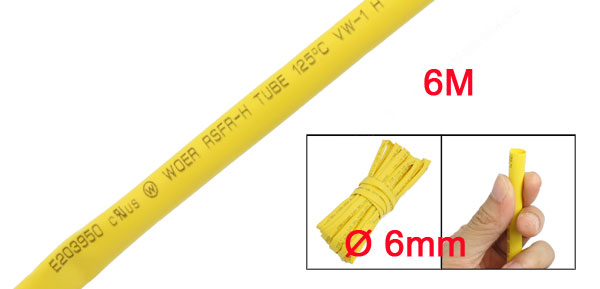 6.0mm Diameter Ratio 2:1 Heat Shrinking Shrinkable Tube Yellow 6M 20Ft