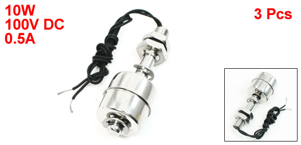 Product Name Floating Switch Model No. ZS6010 Max Contact Rating 10W Max Switching Voltage 100V DC Max Switching Current 0.5A Max Breakdown Voltage 220V DC Max Carry Current 1A Max Contact Resistance 100mΩ Max Temperature -30°C - +120°C Material Stainless Steel, SUS304 Thread Dia(Approx) 10mm / 0.39" Thread Length 15mm / 0.59" Switch Total Length 60mm / 2.4" Cable Length 34cm / 13.4" Color Silver Tone Net Weight 113g Package Content 3 x Floating Switch - Reviews