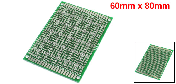 Product Name Universal PCB Board Hole Dia(Approx) 1mm / 0.039" Hole Pitch(Approx) 2.54cm / 0.1" Size(Approx) 60 x 80mm / 2.4" x 3.1"(W*L) Thickness(Approx) 1.5mm / 0.059" Material FR-4 Color Green Net Weight 14g Package Content 1 Pcs x Universal PCB Board - Reviews