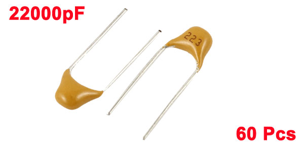 Product Name Multilayer Ceramic Capacitor Quantity 60 Capacitance 0.022uf=22NF=22000pf Capacitance Tolerance ±10% Lead Spacing 5.08mm/ 0.2" Overall Size(Each) 15 x 5mm/ 0.59" x 0.2"(Max. L *W) Net Weight 6g Color As Picture Show Package Content 60 Pcs(±10%) x Multilayer Ceramic Capacitor - Reviews