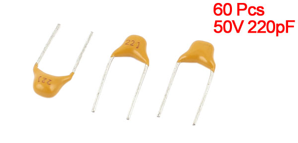 60pcs 50V 220pF Through Hole Ceramic Disc Capacitors