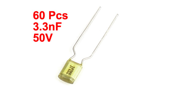 60Pcs 50V 3.3nF Through Tole Radial Lead Polyester Film Capacitors