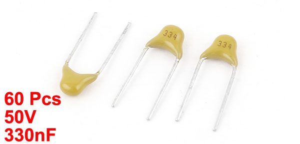 60pcs 50V 330nF Through Hole Ceramic Disc Capacitors
