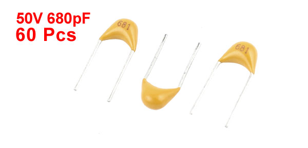 60Pcs Brown Multilayer Ceramic Disc Capacitor 50V 680pF 10% Tolerance