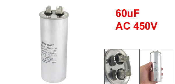 Product Name Motor Capacitor Model CBB65A-1 Housing Material Metal Dielectric Material Metallized Polypropylene Film Capacitance 60uF±5% Rated Voltage AC 450V Frequency 50/60Hz Body Dimension 12.8 x 4.9cm / 5"x1.92" (H*D) Color Silver Tone Weight 268g Package Content 1 x Motor Capacitor  - Reviews