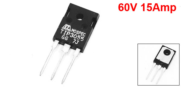 Product Name Silicon Transistor Model No. TIP3055 Mounted Type Through Hole Current 15A Voltage 60V Mounting Hole Diameter 3.5mm / 0.14" Pin Size 20 x 6mm / 0.79" x 0.24" ( L* Pitch) Total Size 40 x 15 x 5mm / 1.57" x 0.29" x 0.20" (L*W*H) Main Material Silicon Weight 6g Package 1 x Silicon Transistor - Reviews