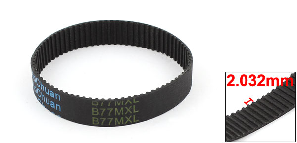 Product Name Timing Belt Model 61.5MXL(B77MXL) Number of Teeth 77 Pitch 2.032mm / 0.08" Tooth Height 0.51mm / 0.02" Tooth Width 1.14mm / 0.04" Belt Width 10mm / 0.4" Belt Girth 156mm/ 0.5Ft/ 6" Total Height 1.14mm/0.04" Belt Material Neoprene (Synthetic Rubber) Core Wire Material Glass Fiber Color Black Net Weight 3g Package Content 1 x Timing Belt - Reviews