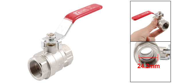 Product Name Ball Valve Material Metal Color Silver Tone, Red Inner Valve Hole Dia 19mm / 0.75" Thread Dia 24.2mm / 61/64" Level Handle Size 105 x 19mm/ 4.13" x 0.75"(L*W) Overall Size 125 x 33mm/ 4.9'' x 1.3" (L*D) Weight 270g Package Contents 1 x Ball Valve - Reviews