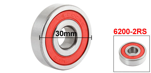 Details6200 2RS Sealed Deep Groove Ball Bearing 10mm x 30mm x 9mm  Product Name Groove Ball Wheel Bearings Type 6200-2RS Materal Carbon Steel, Rubber Outer Diameter 30mm / 2.44" Inner Diameter 10mm/ 1.18" Thickness 9mm/ 0.63" Color Silver Tone, Red Weight 34g Package Content 1 x Groove Ball Wheel Bearings