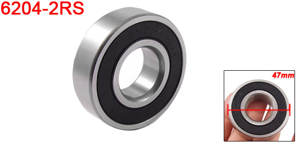 Product Name Ball Bearing Model 6204-2RS Material Steel Color Silver Tone Inner Diameter 20mm / 0.787" Outer Diameter 47mm / 1.850" Width 14mm / 0.551" Net Weight 106g Package Content 1 x Ball Bearings - Reviews