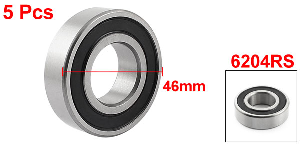 6204RS 46mm x 21mm x 13mm Single Row Deep Groove Ball Bearing 5 Pcs
