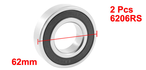 6206RS 30mm Inner 62mm Outer Dia Single Row Deep Groove Ball Bearing 2 Pcs