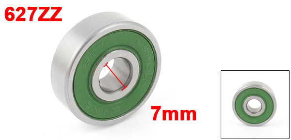 Product Name Deep Groove Ball Bearing Type 627ZZ Materal Steel, Metal Outer Diameter 22mm/0.87" Inner Diameter 7mm/0.28" Thickness 7mm/0.28" Color Silver Tone, Green Weight 13g Package Content 1x Deep Groove Ball Bearing - Reviews