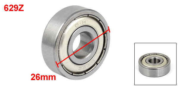 Product Name Deep Groove Ball Bearing Type 629Z Material Metal Outer Diameter 26mm / 1" Inner Diameter 9mm / 0.35" Thickness 8mm / 0.31" Main Color Silver Tone Weight 20g Package Content 1 x Deep Groove Ball Bearing - Reviews