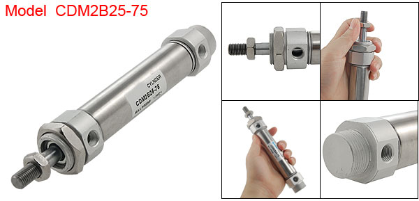 Product Name Air Cylinder Model CDM2B25-75 Action Type Double Action Working Fluid Air Bore 25mm / 63/64" Stroke 75mm / 2 61/64" Max.Press 1.0Mpa Screwed Rod Diameter 9.7mm / 0.38" Screwed End Diameter 25.5mm / 1" Port Diameter 8mm / 0.31" Overall Size 19.5 x 3cm/7.7" x 1.2"(L*Max.W) Material Aluminum Alloy Color Silver Tone Weight 285g Package Content 1 x Air Cylinder - Reviews