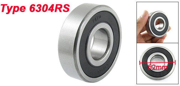 Product Name Deep Groove Ball Bearing Type 6304RS Materal Metal, Rubber Outer Diameter 52mm/ 2.04" Inner Diameter 20mm/ 0.78" Thickness 15mm/ 0.59" Color Silver Tone, Black Weight 142g Package Content 1 x Deep Groove Ball Bearing - Reviews