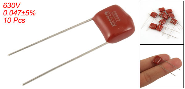 Product Name Metallized Polypropylene Film Capacitor Model CBB22 Dielectric Material Metallized Polypropylene Film Withstand Voltage 630V Capacitance 0.047uF Capacitance Tolerance ±5% Lead Spacing 10mm / 0.39" Total Size (Each) 38 x 11 x 5mm / 1.5" x 0.43" x 0.2" (L*W*T) Weight 8g Color As Picture Shown Package Content 10 x Metallized Polypropylene Film Capacitors - Reviews