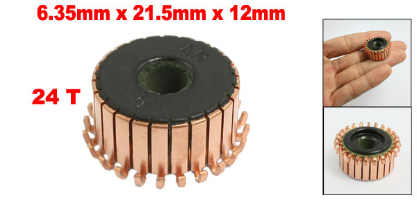 6.35mm Shaft Dimeter 21.5mm OD 24 Tooth Copper Shell Electric Motor Commutator
