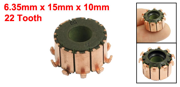 6.35mm x 15mm x 10mm 10 Gear Tooth Copper Case Mounted On Armature Commutator