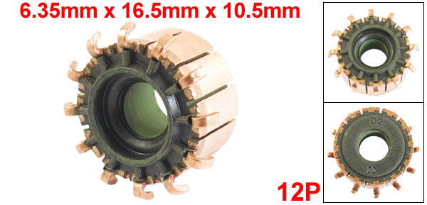 Product Name Motor Commutator Copper Bar Number 12P Total Length 6.35 x 16.5 x 10.5mm/0.25" x 0.6" x 0.4"(ID*OD*T) Material Copper, Feerite Color Copper Tone, Black Net Weight 6g Package Content 1 x Motor Commutator - Reviews