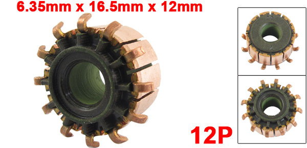 Product Name Motor Commutator Copper Bar Number 12P Total Length 6.35 x 16.5 x 12mm/0.25" x 0.6" x 0.5"(ID*OD*T) Material Copper, Feerite Color Copper Tone, Black Net Weight 6g Package Content 1 x Motor Commutator - Reviews