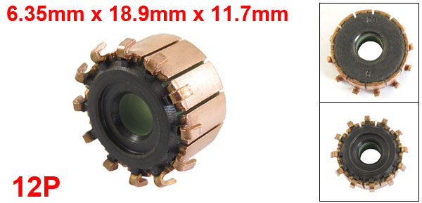 Product Name Motor Commutator Copper Bar Number 12P Total Length 6.35 x 18.9 x 11.7mm/0.25" x 0.7" x 0.5"(ID*OD*T) Material Copper, Feerite Color Copper Tone, Black Net Weight 8g Package Content 1 x Motor Commutator - Reviews