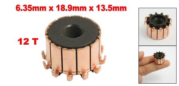 Product Name Commutator Color Copper Tone Material Copper, Steel Type K Type Size 6.35 x 18.9 x 13.5mm / 5/8" x 3/4" x 17/32" (Shaft D*OD*H) Gear Tooth Quantity 12 Pcs Net Weight 11g Package Content 1 x Commutator - Reviews