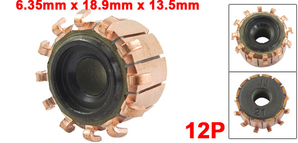 Product Name Motor Commutator Copper Bar Number 12P Total Length 6.35 x 18.9 x 13.5mm/0.25" x 0.7" x 0.5"(ID*OD*T) Material Copper, Feerite Color Copper Tone, Black Net Weight 12g Package Content 1 x Motor Commutator - Reviews