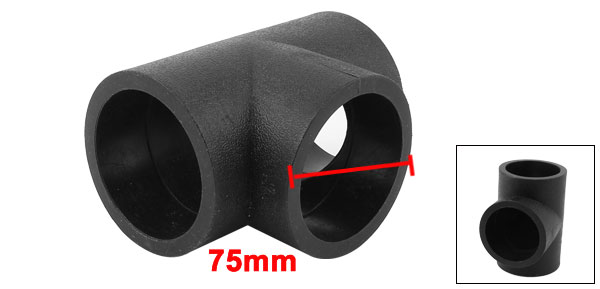 Product Name Pipe Fitting Type Tee Shape Connection Socket fusion joint Fit Pipe Outside Dia. 63mm Hole Inner Dia. 60mm/ 2.4" Hole Outside Dia. 75mm / 3" Total Length 115mm / 4.5" Material HDPE Color Black Weight 200g Package Content 1 x Pipe Fitting - Reviews