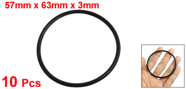 63mm External Dia. 3mm Thickness Oil Seal O Rings Gaskets Black 10pcs