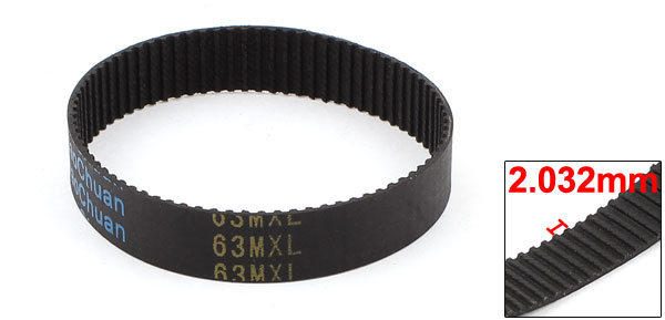 Product Name Timing Belt Model 63MXL Number of Teeth 79 Pitch 2.032mm / 0.08" Tooth Height 0.51mm / 0.02" Tooth Width 1.14mm / 0.04" Belt Width 10mm / 0.4" Belt Girth 160.5mm/ 0.5Ft/ 6.3" Total Height 1.14mm/0.04" Belt Material Neoprene (Synthetic Rubber) Core Wire Material Glass Fiber Color Black Net Weight 3g Package Content 1 x Timing Belt - Reviews