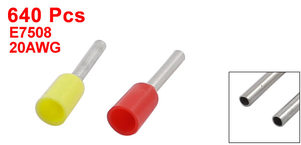 640 Pcs E7508 Yellow Red Tube Head Insulated Terminal Connector 20AWG